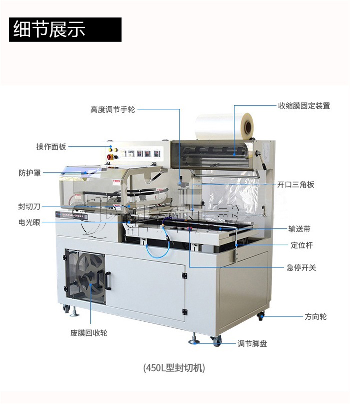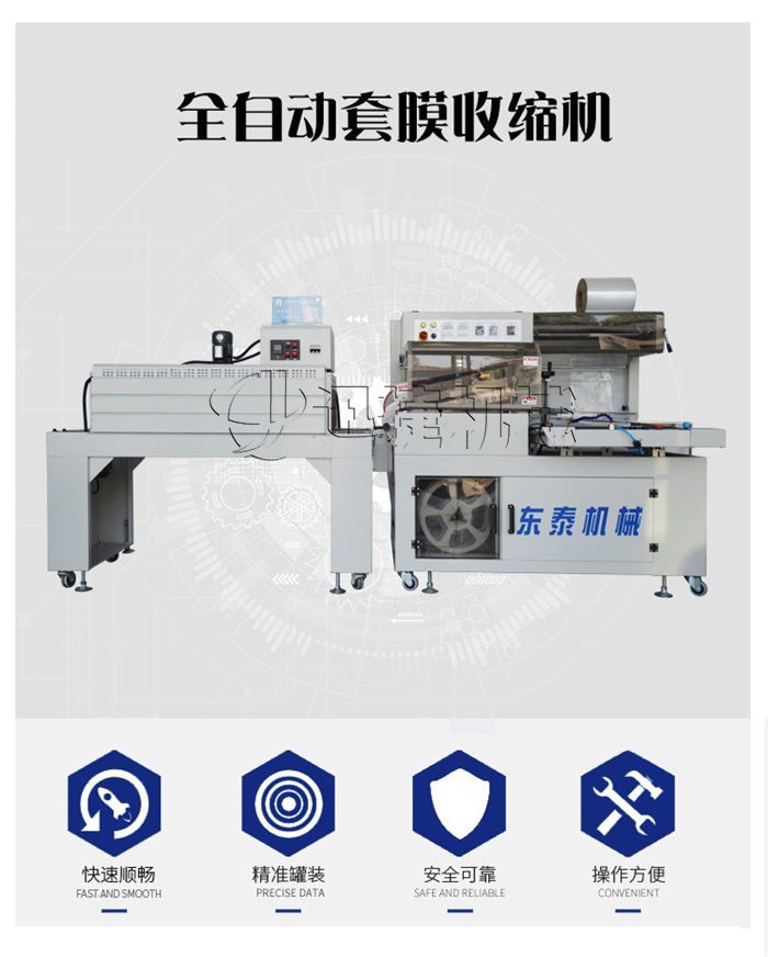 全自動套膜收縮機是由全自動450L封切機和熱收縮機組成,入袋、切斷、熱封、熱收縮一條線自動完成,還可以與進料生產線連接,實現無人操作。提高效率,帶來利益。全自動化封切收割,適用于各種物品的套膜及收縮,生產效率高。