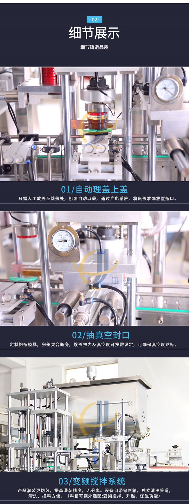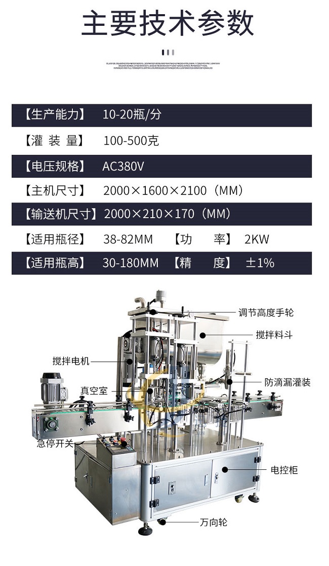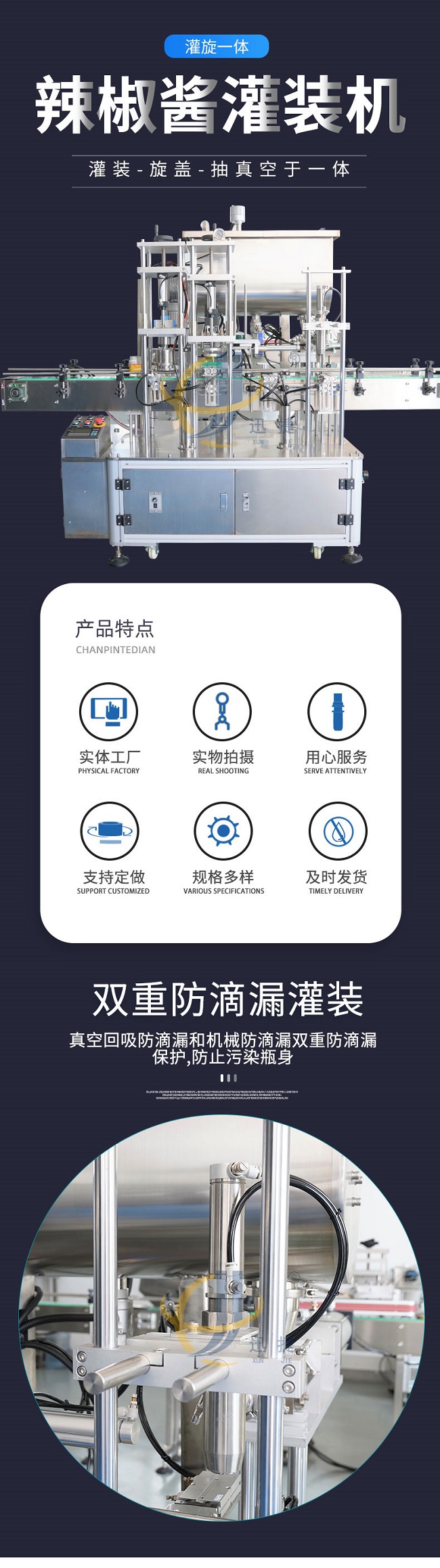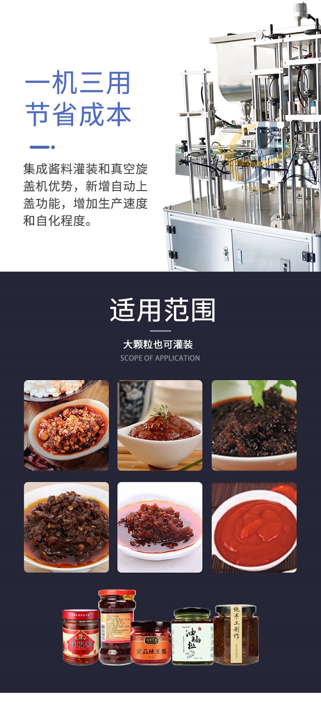 現(xiàn)在的生活節(jié)奏也比較快,牛肉醬也比較方便購(gòu)買,網(wǎng)上、超市都有的售賣,所以許多的商家開(kāi)始與全自動(dòng)牛肉醬灌裝機(jī)廠家直銷進(jìn)行合作,全自動(dòng)牛肉醬灌裝機(jī)您知道如何選購(gòu)嗎?這時(shí)候在灌裝顆粒比較大或者比較粘稠或比較干的醬料的時(shí)候,我們?nèi)詣?dòng)牛肉醬灌裝機(jī)采用柱塞式進(jìn)行計(jì)量,保證定量準(zhǔn)確可靠,可用于多種瓶型,換瓶型只需要更換一套模具,模具更換的時(shí)間約為15分鐘左右,為了迎合社會(huì)發(fā)展的主題,全自動(dòng)牛肉醬灌裝機(jī)效率高,幫助了很多企業(yè)解決了人工難題也更受消費(fèi)者歡迎。