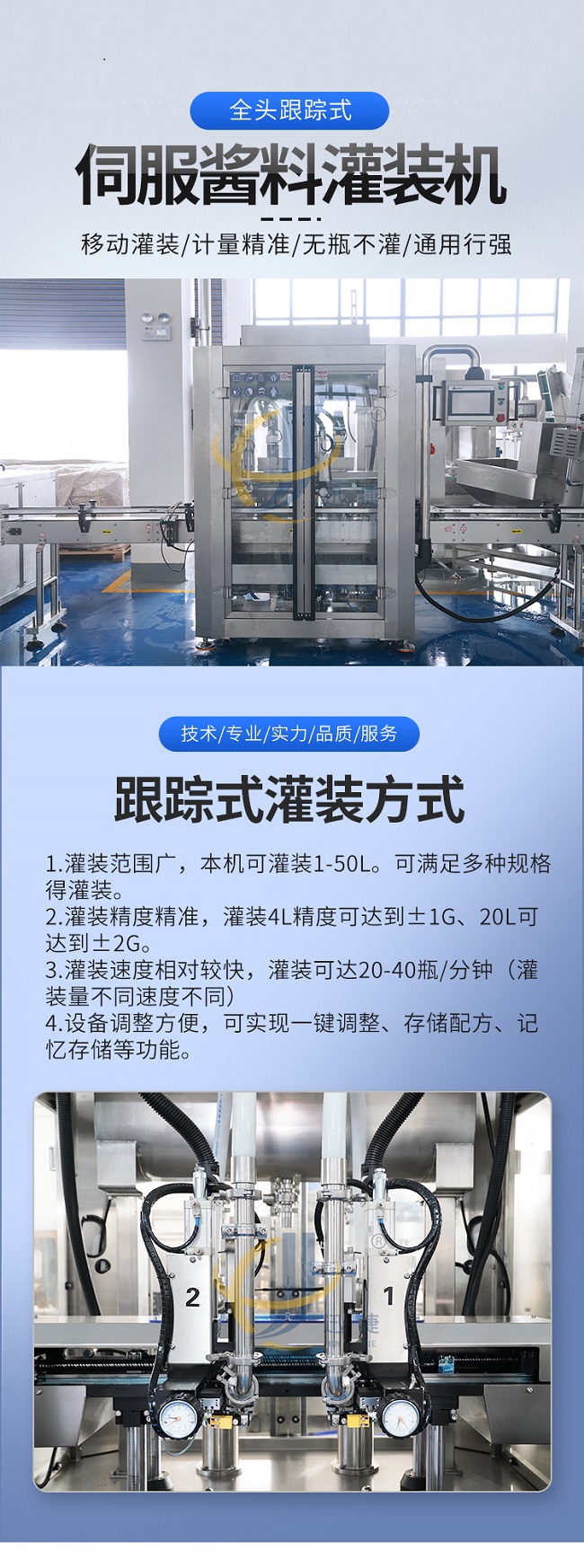 隨著現(xiàn)代經(jīng)濟(jì)飛速發(fā)展,人們的生活品質(zhì)都大大提高了,現(xiàn)在大家對(duì)于調(diào)味醬肯定都不陌生了,現(xiàn)在市場(chǎng)上各種各樣的調(diào)味醬深受人們的喜愛,例如有牛肉醬、香菇醬、甜辣醬、番茄醬等等,調(diào)味醬市場(chǎng)競(jìng)爭(zhēng)激烈,要想吸引人們的購(gòu)買欲,包裝肯定是必不可少的,所以許多商家開始與全自動(dòng)調(diào)味醬灌裝機(jī)設(shè)備生產(chǎn)廠家合作。那么很多客戶不知道全自動(dòng)調(diào)味醬灌裝機(jī)設(shè)備哪家好,這里小編推薦濟(jì)南迅捷,公司多年來(lái)一直勇于創(chuàng)新,以市場(chǎng)的需求為最重要的,引進(jìn)了先進(jìn)的技術(shù),生產(chǎn)的全自動(dòng)調(diào)味醬灌裝機(jī)設(shè)備不僅在質(zhì)量,品質(zhì)上都很棒而且還具備了使用壽命長(zhǎng),操作簡(jiǎn)單,灌裝精準(zhǔn)等等一系列優(yōu)點(diǎn)。全自動(dòng)調(diào)味醬灌裝機(jī)設(shè)備滿足了客戶的一系列要求給企業(yè)帶來(lái)了很大的利潤(rùn)。